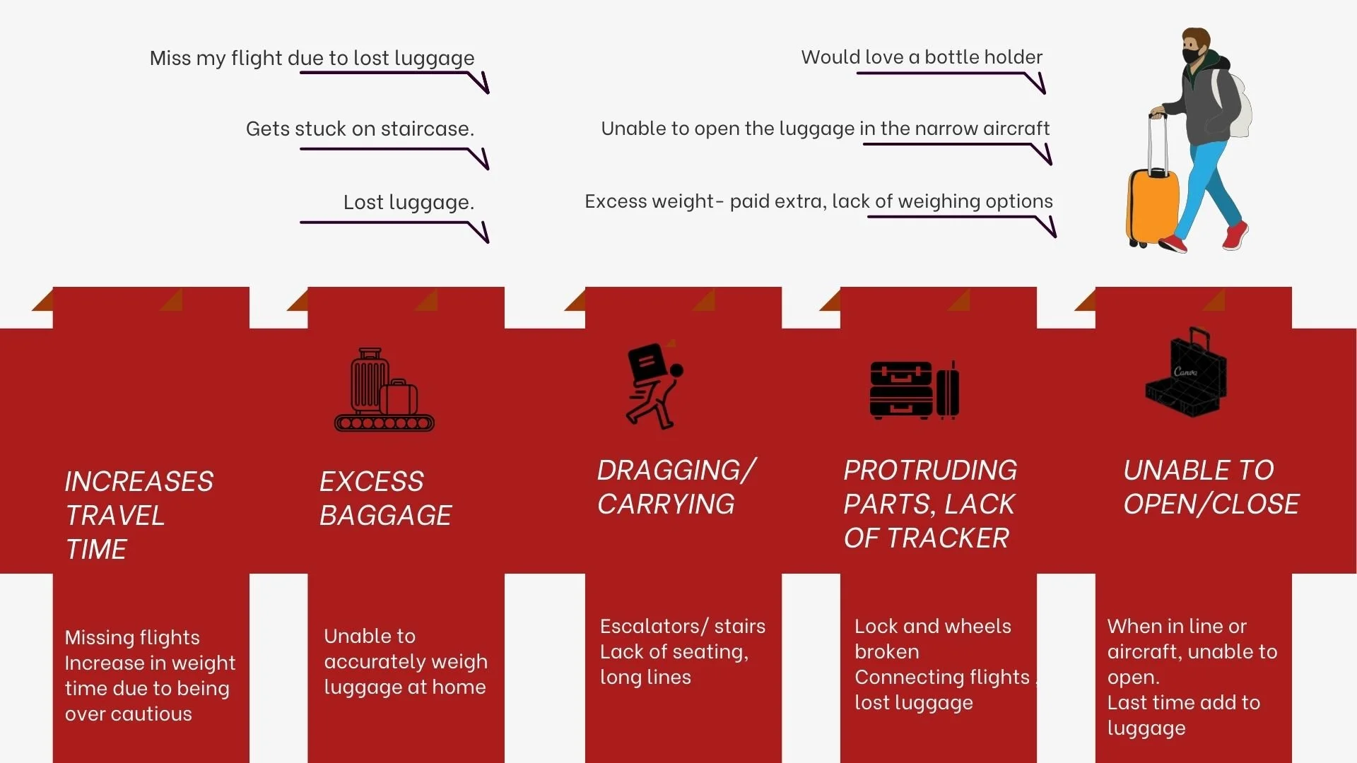 This project introduces an innovative air travel solution combining a redesigned cabin baggage with the Buddy mobile application. The cabin baggage addresses common travel issues like mobility, storage, and durability, while the Buddy app provides smart weight tracking features. Together, they form an integrated system that helps prevent common travel problems such as excess baggage fees, lost luggage, and weight management difficulties. The design prioritizes user convenience and peace of mind through thoughtful engineering and digital integration, ultimately creating a more streamlined travel experience.